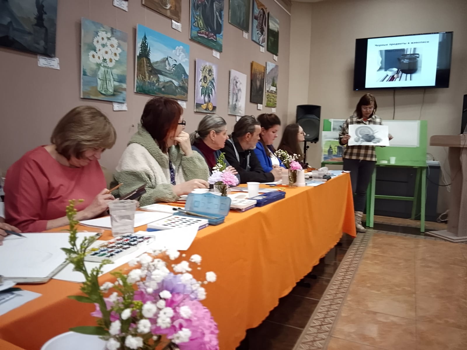 В этот раз встреча педагогов-художников была посвящена теме «Техники акварельной живописи в работе над учебным натюрмортом». В рамках теоретической части заседания коллеги делились опытом преподавания таких техник, как гризайль, лессировка, изображение чёрных предметов акварелью. На практической части мероприятия были проведены мастер-классы по практическому применению техник.