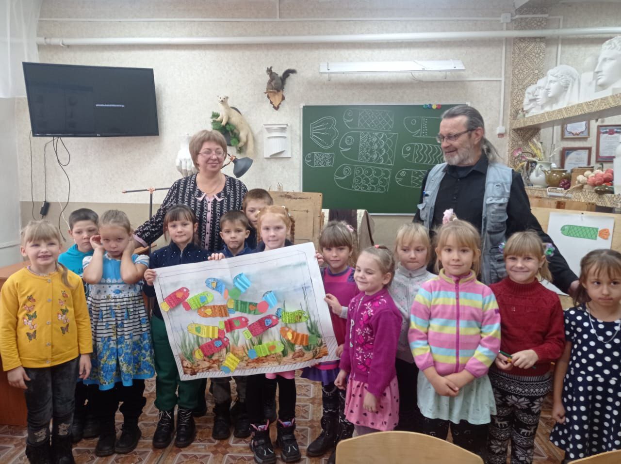 В школе их тепло встретил директор учреждения, Евгений Александрович Лысцов, который представил программу дня и рассказал о специальном мастер-классе. Дети с замиранием сердца рассматривали выставку работ старших воспитанников, восхищаясь живописью и экспонатами декоративно-прикладного творчества. Затем гости были приглашены на мастер-класс "Волшебный аквариум", организованный преподавателями Светланой Александровной Бровко и Владимиром Викторовичем Клешковым. В ходе занятия у детей возникло множество идей для создания собственных художественных произведений, и они осознали, что теперь у них есть пространство для развития своих навыков и талантов. Вдохновившись процессом создания, маленькие художники начали планировать свои будущие шедевры, осознавая, что теперь у них есть место, где они могут развивать свои творческие навыки. Мы искренне надеемся, что полученные впечатления и знания станут важным этапом в их дальнейшем развитии.